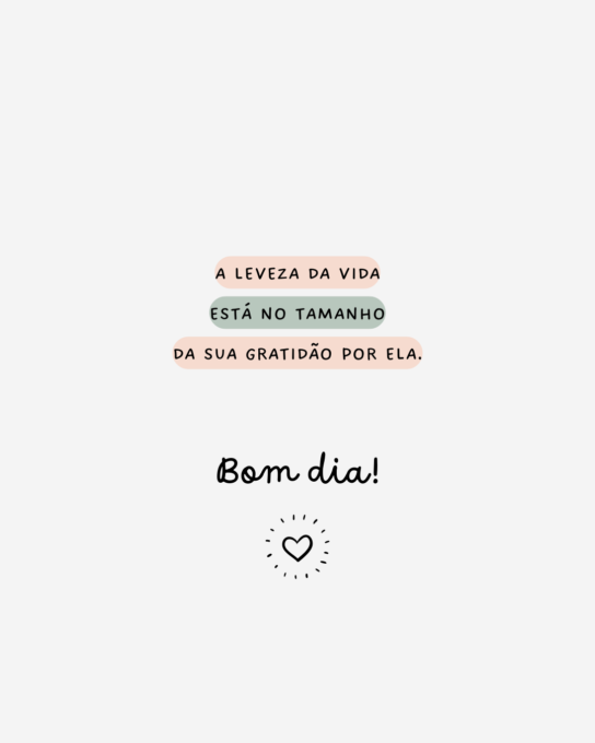A leveza da vida está no tamanho da sua gratidão por ela. Bom dia!