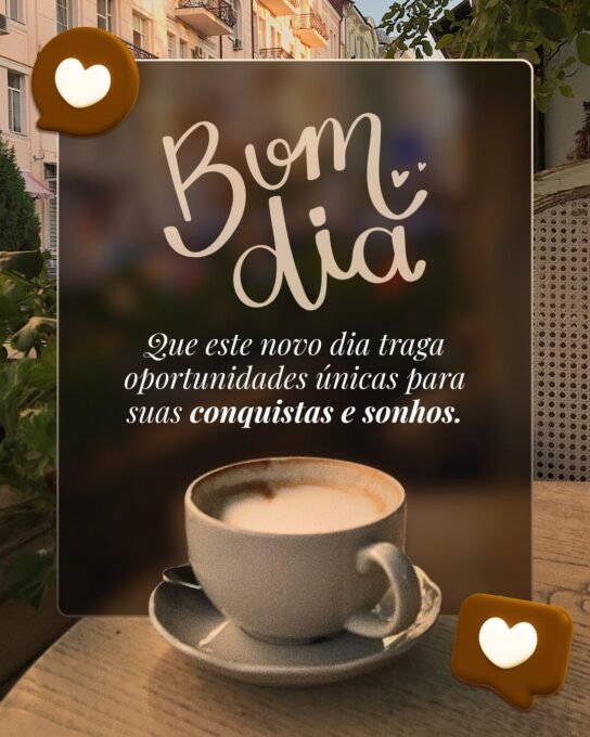 Bom dia! Que este novo dia traga oportunidades únicas para suas conquistas e sonhos.